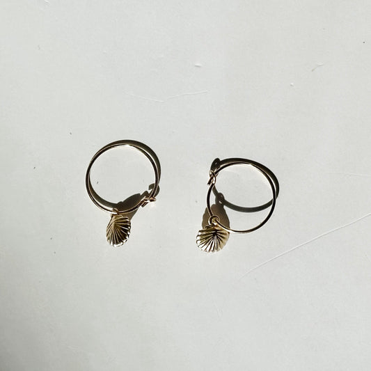 Mini Scallop Seashell Gold Filled Hoops Earrings