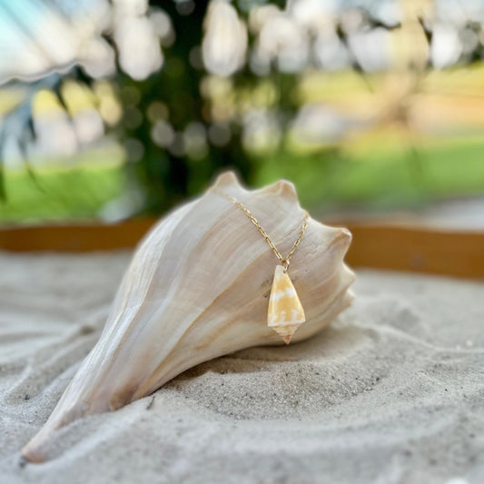 Yellow Florida Cone Shell Necklace 14K Gold Filled Chain