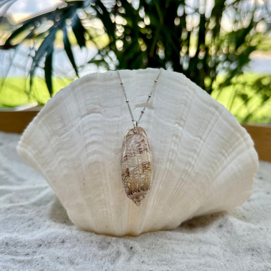 Unique Lettered Olive Seashell Sterling Silver Necklace