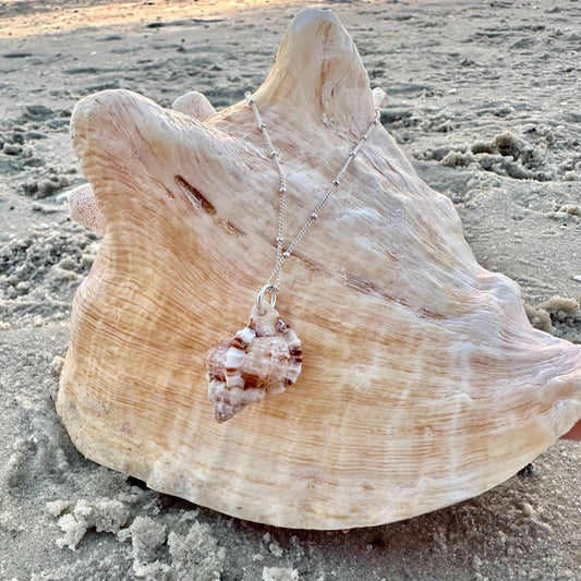 Unique Florida Rock Snail Seashell Sterling Silver Necklace