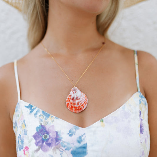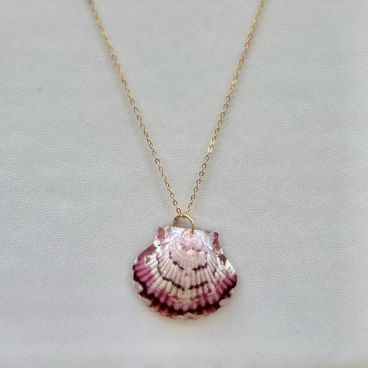Unique Red Purple Spotted Scallop 14k Gold Filled Necklace