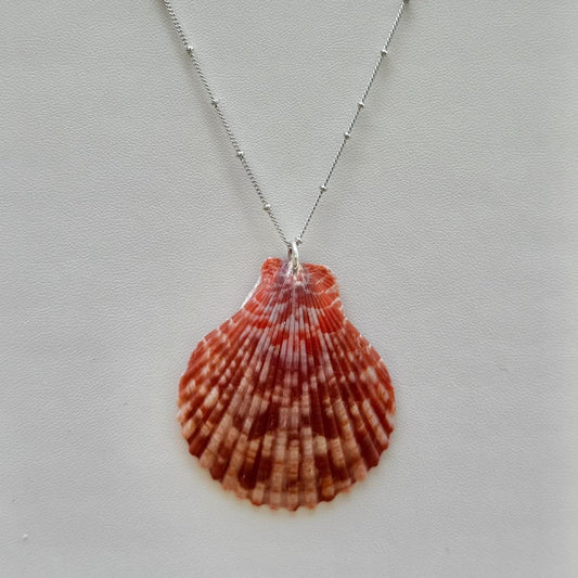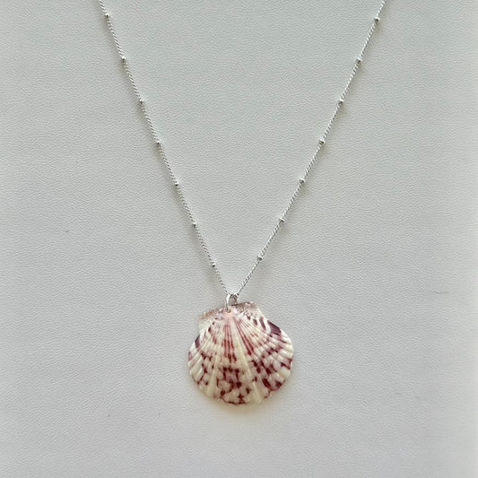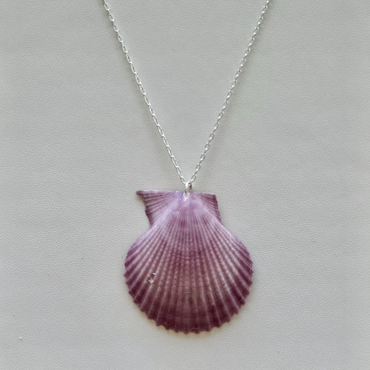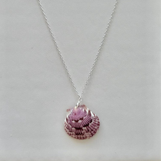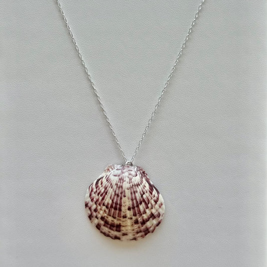 Spotted Purple Scallop Seashell Sterling Silver Necklace