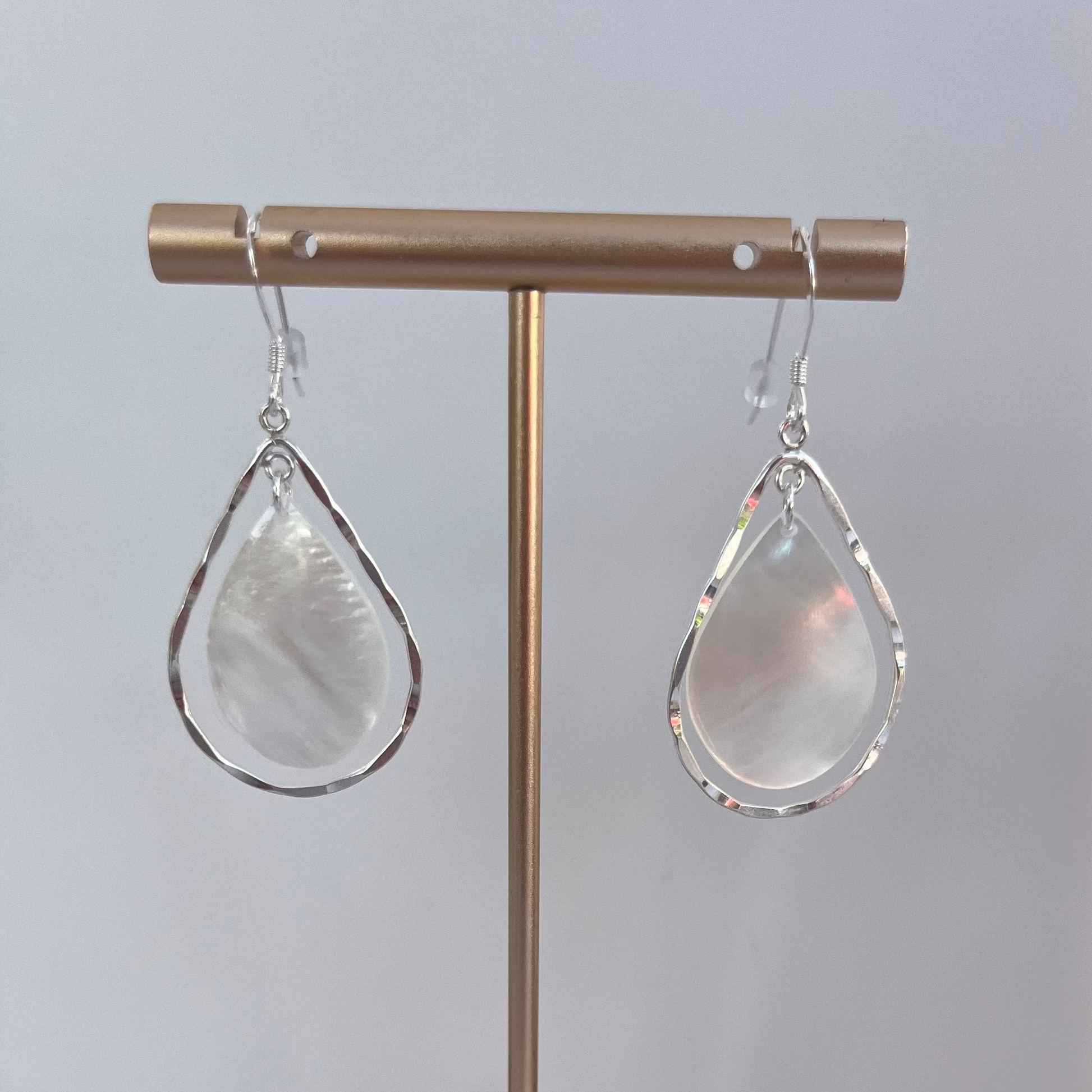 Mother of Pearl Sterling Silver Large Wavy Teardrop Earrings