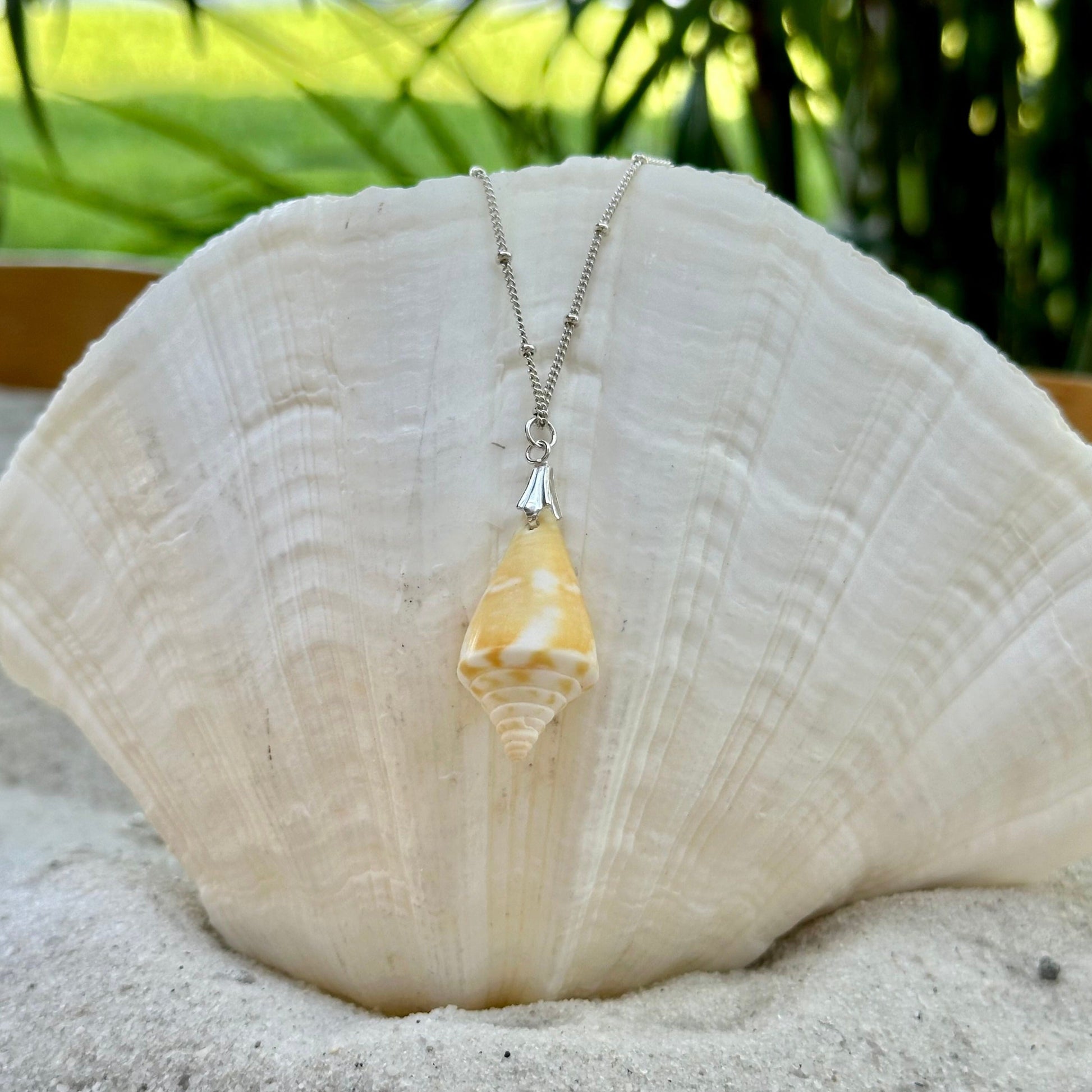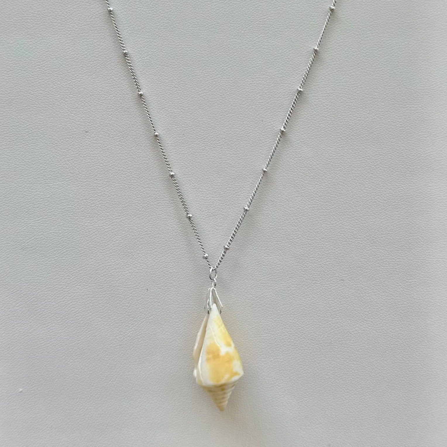 Yellow Florida Cone Shell Satellite Sterling Silver Necklace